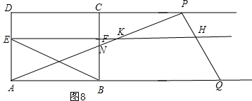 ③如图8,当t>9,即点K在点F的右侧,![]()