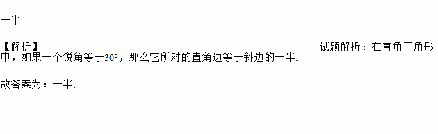 在直角三角形中,如果一个锐角等于30°,那么它所对的直角边等于斜边的________.