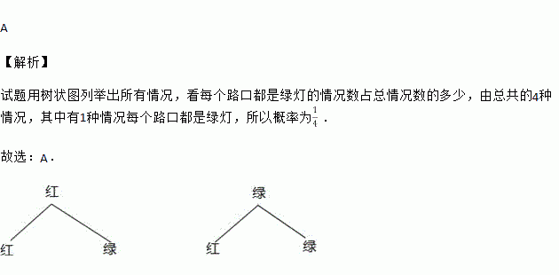 小红上学要经过两个十字路口,每个路口遇到红、绿灯的机会都相同,小红希望上学时经过每个路口都是绿灯,但实际这样的机会是( )