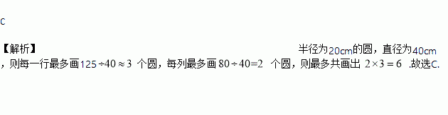 在长125厘米,宽为 80厘米的长方形纸板上,你能最多画( )个半径为20厘米的圆。