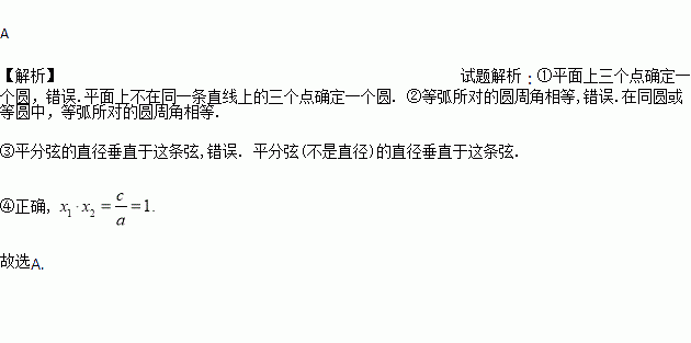 ③平分弦的直径垂直于这条弦 ④方程的两个实数根之积为1