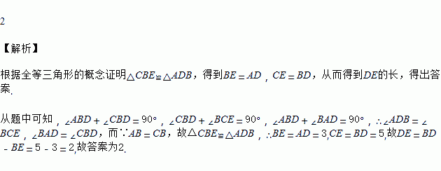 如图,在△ABC中,AB=CB,∠ABC=90°,AD⊥BD于点D,CE⊥BD于点E,若CE=5,AD=3,则DE的长是________.