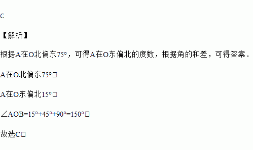 如图,一艘轮船行驶在O处同时测得小岛A、B的方向分别为北偏东75°和西南方向,则∠AOB等于( )