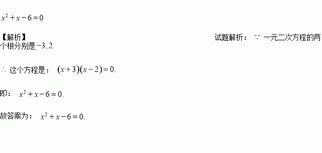 若一个一元二次方程的两个根分别是-3、2,请写出一个符合题意的关于x的一元二次方程 __.