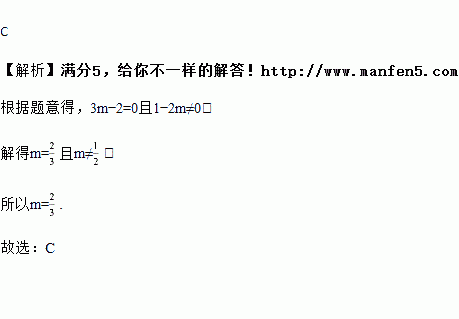 若函数y=(3m-2)x2+(1-2m)x(m为常数)是正比例函数,则m的值为( )