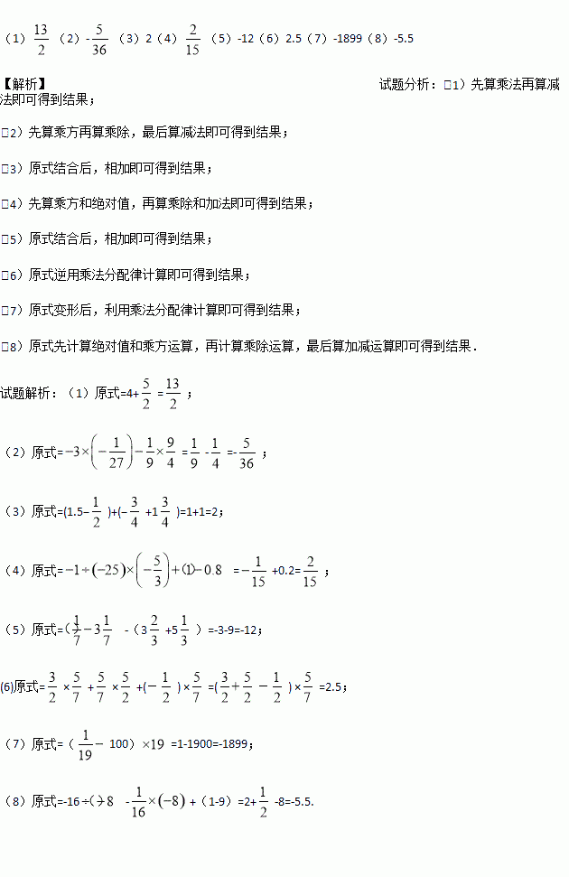 (5)-3—5+(-3) (6)×-(-)×+(-)÷ ;