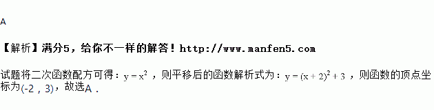 将抛物线向左移动2个单位,再向上移动3个单位后,抛物线的顶点为( )