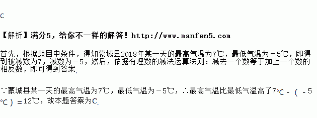 如表为蒙城县2018年某日天气预报信息,根据图表可知当天最高气温比最低气温高了( )