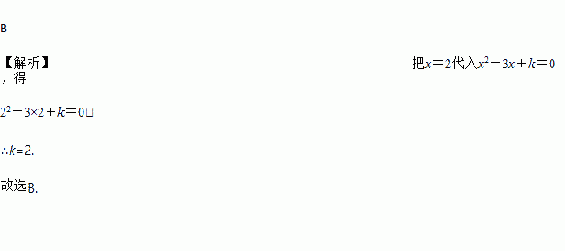 如果2是方程x2﹣3x+k=0的一个根,则常数k的值为( )