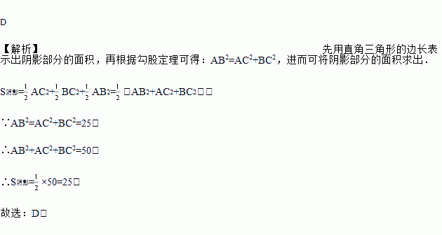 如图,以Rt△ABC的三边为直角边分别向外作等腰直角三角形.若AB=5,则图中阴影部分的面积为( )