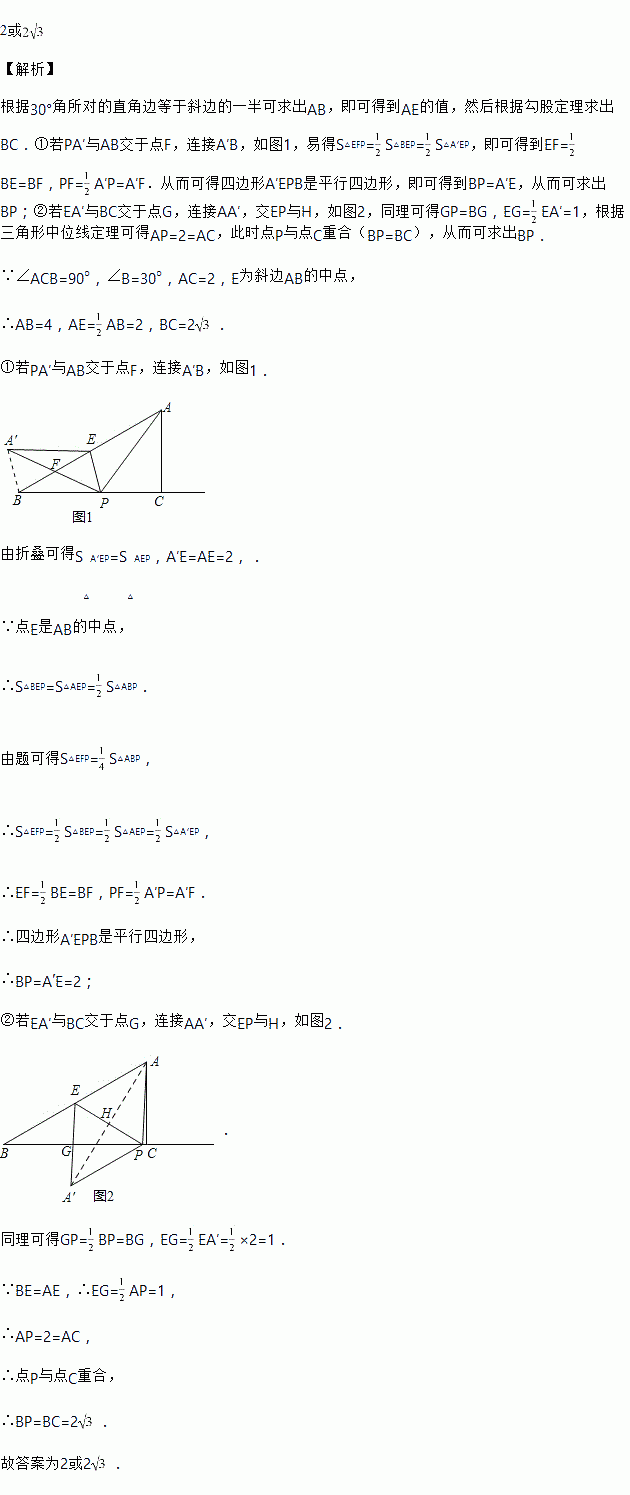 ,,E为斜边AB的中点,点P是射线BC上的一个动点,连接AP、PE,将![]()