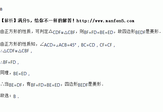 如图所示,正方形中,,是对角线上两点,连接,,,,则添加下列哪一个条件可以判定四边形是菱形( )