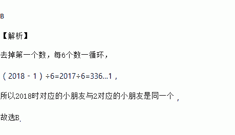 如图,四个小朋友站成一排,老师按图中所示的规则数数,数到2018时对应的小朋友可得一朵红花,那么得红花的小朋友是( )