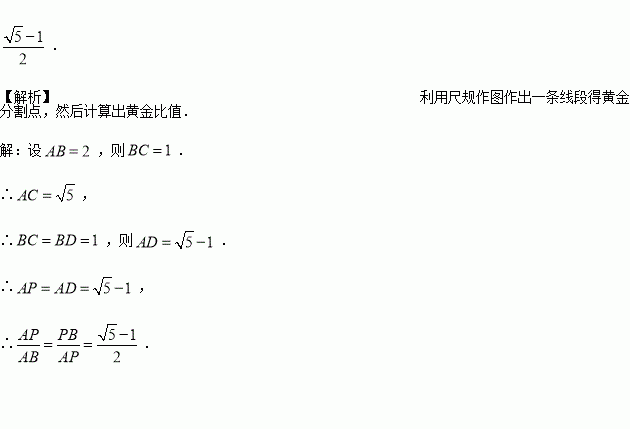 小文同学在百度作业帮中搜索到怎样尺规作图作出一条线段得黄金分割点,但不知道黄金分割的比值,请你帮助他写出黄金比值__________.