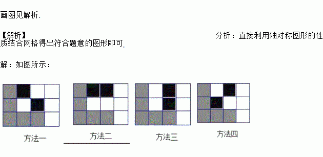 如图,阴影部分是由5个小正方形组成的一个直角图形,请用四种方法分别在如图方格内添涂黑二个小正方形,使阴影部分成为轴对称图形.