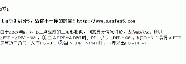 ,若△DCF与E、F、D三点组成的三角形相似,则BD的长等于_____.