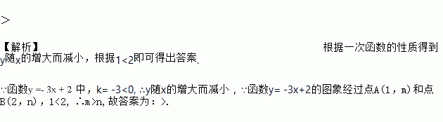 已知函数 的图像经过点A(1,m)和点B(2,n),则m___n(填“>”“<”或“=”).