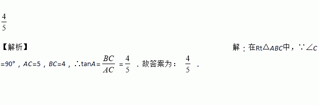 在Rt△ABC中,∠C=90°,AC=5,BC=4,则tanA=_____.