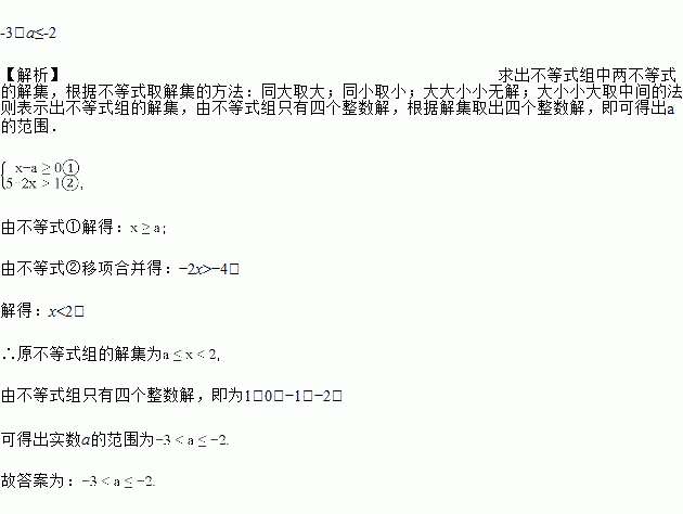 已知关于x的不等式只有四个整数解,则实数a的取值范是__________.