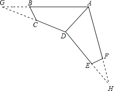 分析:延长AB、DC交于点G,延长AF、DE交于点H.连接AD并延长.根据三角形的外角性质即可求得∠CDE=∠G+∠H+∠BAF,从而判断是否合格.