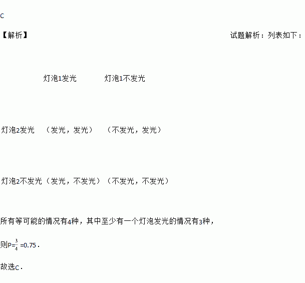 如图,每个灯泡能否通电发光的概率都是0.5,当合上开关时,至少有一个灯泡发光的概率是( )