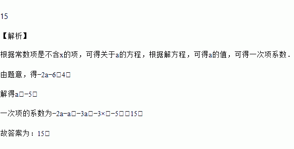 若关于x的一元二次方程4x2-2ax-ax-2a-6=0常数项为4,则一次项系数______.
