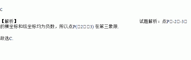 C 【解析】试题解析:点P(-2,-3)的横坐标和纵坐标均为负数,所以点P(-2,-3) 在第三象限. 故选C.