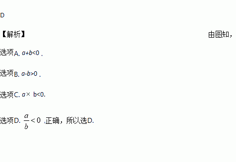 A. a+b>0 B. a-b<0 C. ab>0 D.