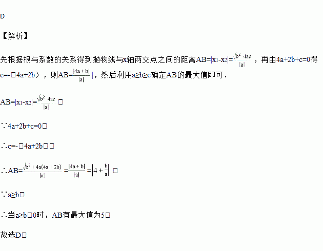 若实数,,,满足,且,抛物线与轴交于,,则线段的最大值是( )