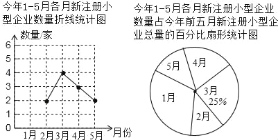 为鼓励返乡农民工创业,宿州市政府制定了小型企业的优惠政策,许多小型企业应运而生.某镇统计了该镇今年1~5月新注册小型企业的数量,并将结果绘制成如下两种不完整的统计图: