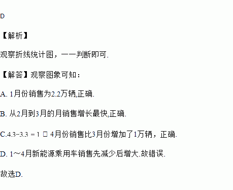 2018年1~4月我国新能源乘用车的月销售情况如图所示,则下列说法错误的是( )