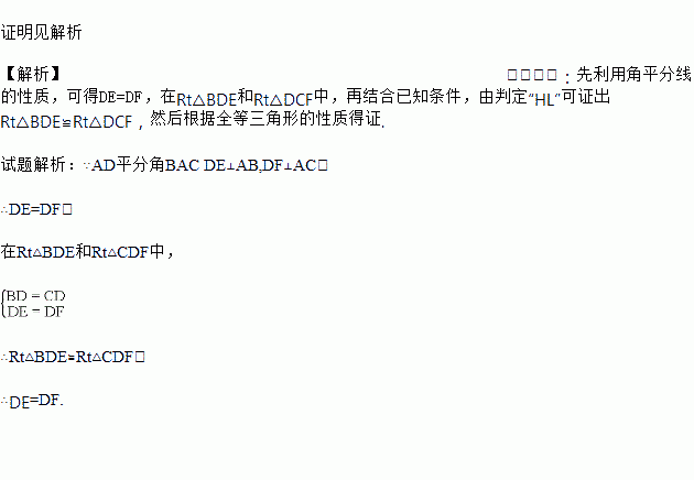 如图,△ABC中,AD是它的角平分线,且BD=CD,DE⊥AB,DF⊥AC,垂足分别为EF.