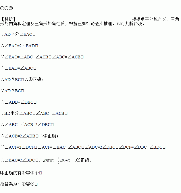 如图,,AD、BD、CD分别平分的外角、内角、外角以下结论:
