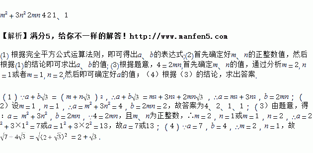 (2)利用所探索的结论,找一组正整数a,b,m,n填空: