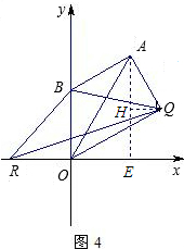 0,4),点A在第一象限.点R是x轴上的一个动点,连接BR,并把△BOR绕着点B按逆时针方向旋转,使边BO与BA重合,得到△BAQ.