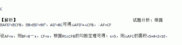 如图,在矩形ABCD中,AB=8,BC=4,将矩形沿AC折叠,点D落在点D′处,则重叠部分△AFC的面积为( )