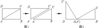 将矩形纸片沿对角线剪开,得到和,如图所示.将的顶点与点重合,并绕点按逆时针方向旋转,使点、、在同一条直线上,如图所示.