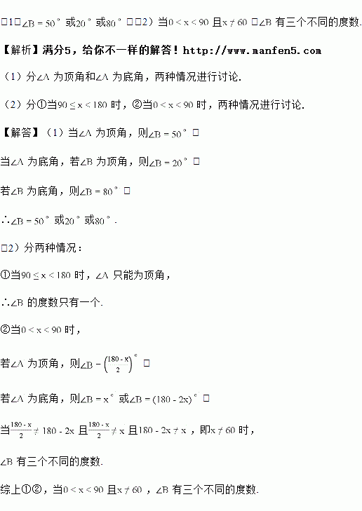 的度数的个数也可能不同.如果在等腰三角形![]()