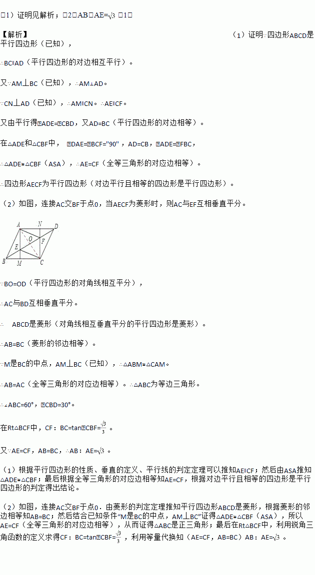 (2)当AECF为菱形,M点为BC的中点时,求AB:AE的值.