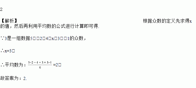 一组数据5,-2,4,x,3,-1,若3是这组数据的众数,则这组数据的平均数是________.