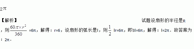 如图,已知扇形OAB的圆心角为60°,扇形的面积为6π,则该扇形的弧长为______.