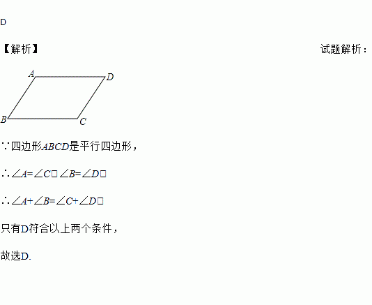 平行四边形ABCD中, ∠A:∠B:∠C:∠D的值可以是( )