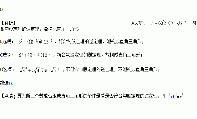 将下列长度的三根木棒首尾顺次连接,不能组成直角三角形的是.