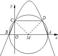 分析:(1)取圆心为M,根据抛物线和圆都是轴对称图形,可证明△BCM、△ADM、△CDM都是等边三角形,其中OC是△BCM的高,解直角三角形可得BC长,即为圆的半径,从而可表示A、B两点坐标;