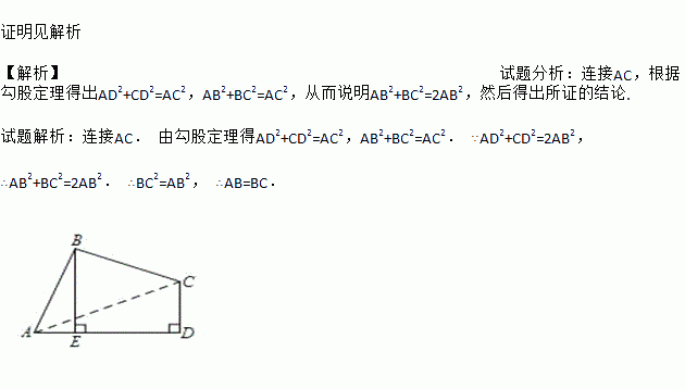 如图,在四边形ABCD中,∠B=90°,CD⊥AD,AD2+CD2=2AB2.求证:AB=BC.