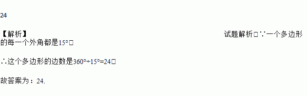 一个多边形的每一个外角都是15°,它是 _______边形.