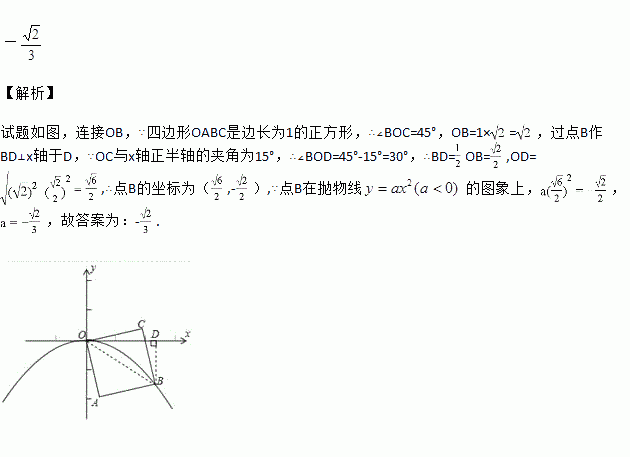 如图,四边形OABC是边长为1的正方形,OC与x轴正半轴的夹角为15°,点B在抛物线的图像上,则的值为 .