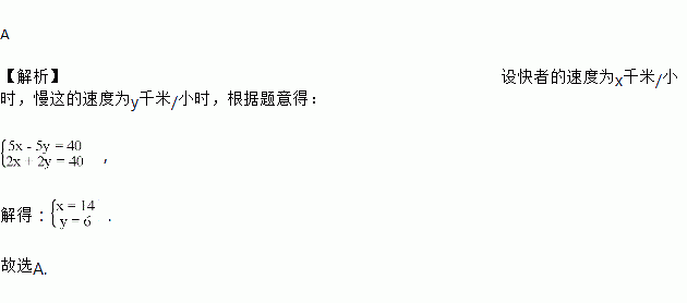 甲、乙两人分别从相距40千米的两地同时出发,若同向而行,则5小时后,快者追上慢者;若相向而行,则2小时后,两人相遇,那么快者速度和慢者速度(单位:千米/小时)分别是( )
