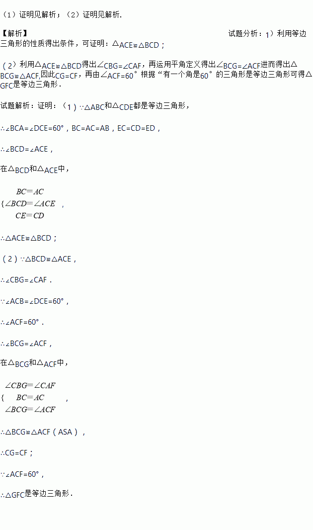 求证:(1)△ACE≌△BCD;(2)△GFC是等边三角形.