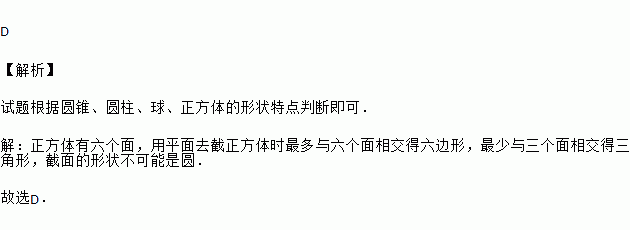 (2008•茂名)用平面去截下列几何体,截面的形状不可能是圆的几何体是( )